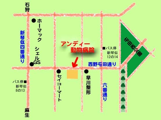 中央バス新琴似8条13丁目停留所(新琴似四番通り)から徒歩8分